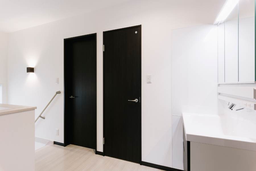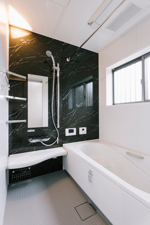 洗面脱衣室も浴室も『ブラック×ホワイト』で統一。