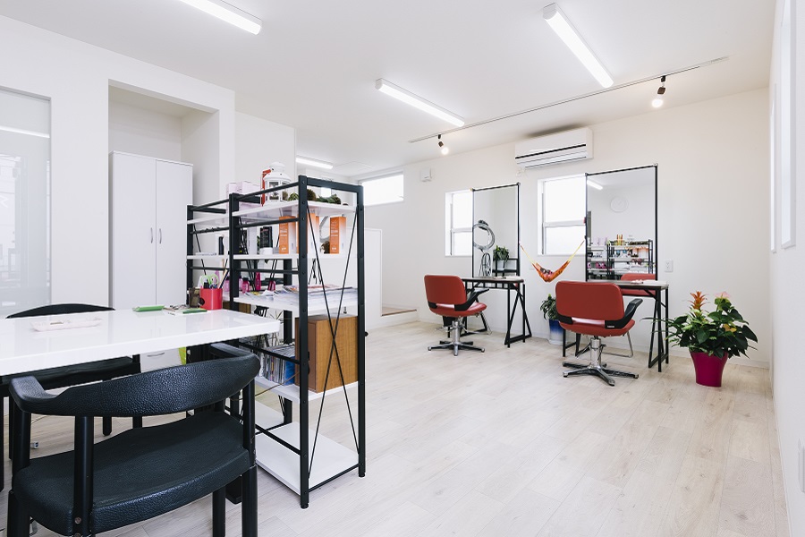 ヘアサロンとしてのたたずまいと、プライベートな住空間をバランス良く考えた”店舗併用住宅”が完成しました。