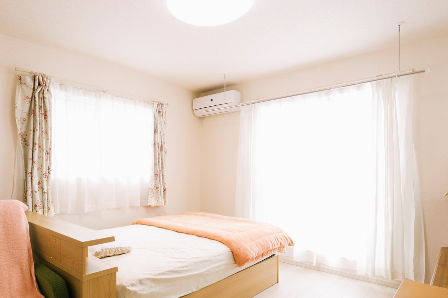 2面にとった窓からは自然光がたっぷり降り注ぎ、冬でもポカポカと暖かいお部屋に。