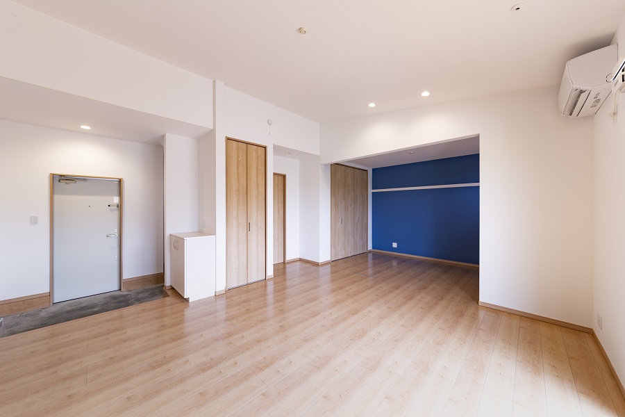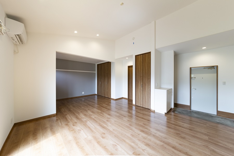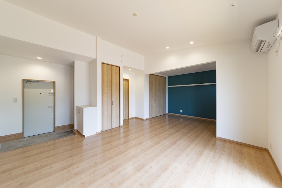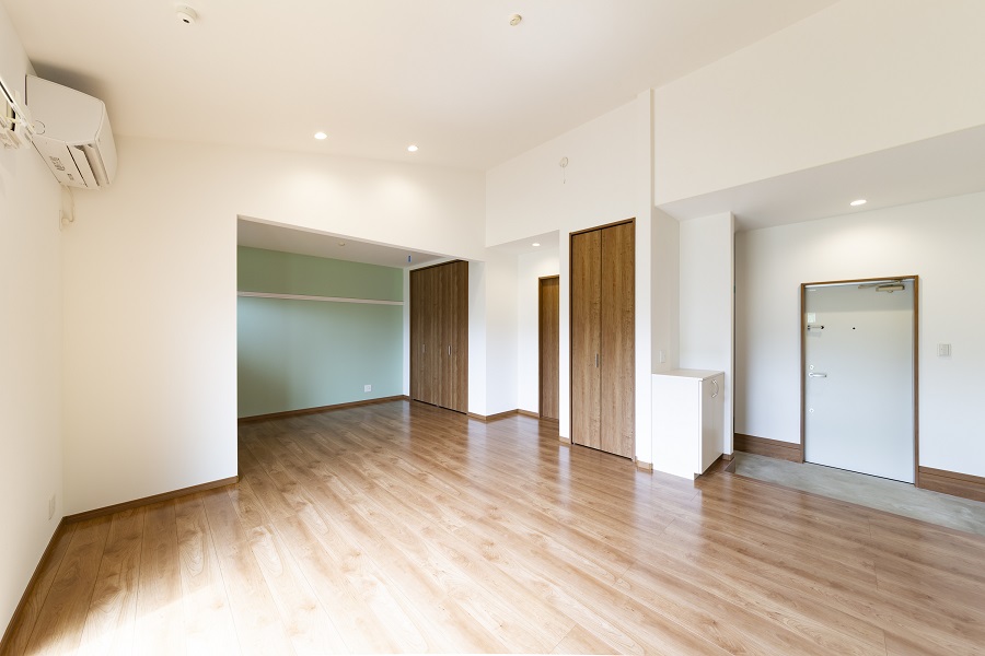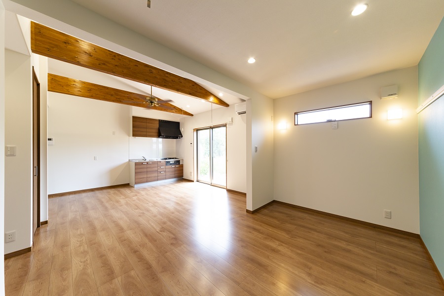 奥に配置した洋室も、ドアを無くす事で間仕切りのない「広々空間」に仕上がりました。