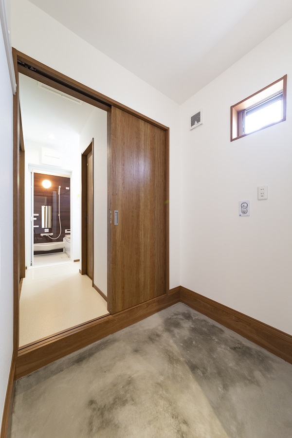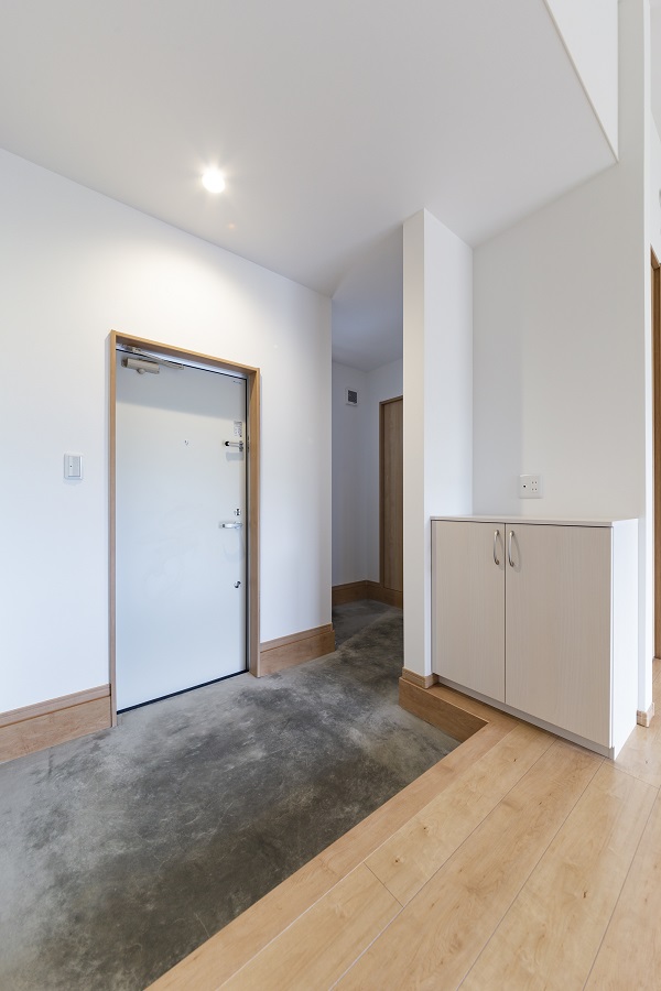玄関回りも土間仕上げで広々とスッキリとした印象に。