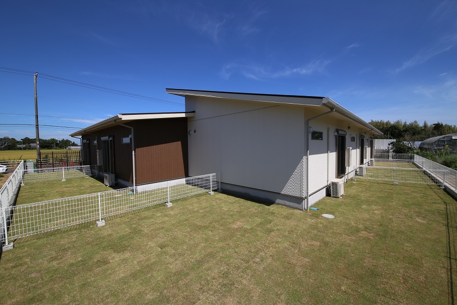広い敷地を利用し”L型”に配置した平屋の賃貸アパート。