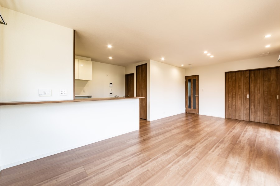 室内の床やドアはグレイッシュなカラーできめ細やかな木質感が印象的な“トープグレー”で統一。